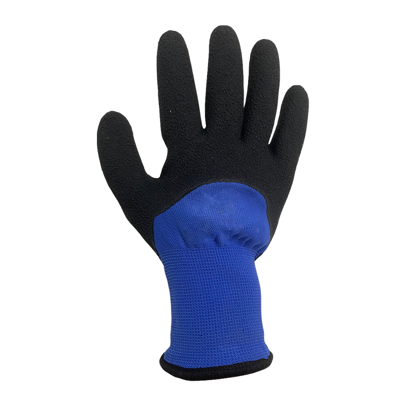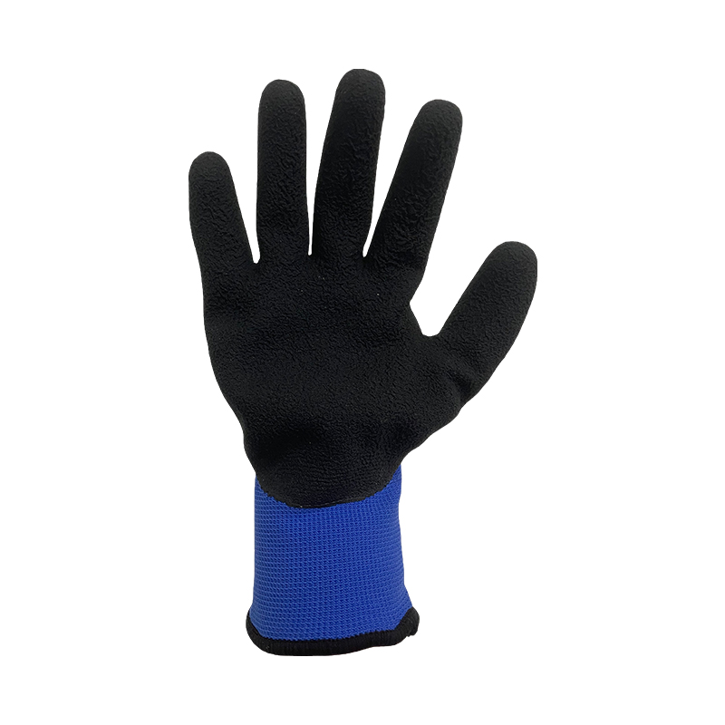 13G blue polyester glove with 10G acrylic brushed terry lining,sandy latex 3/4 coating,good protection against low temperature max -50°C