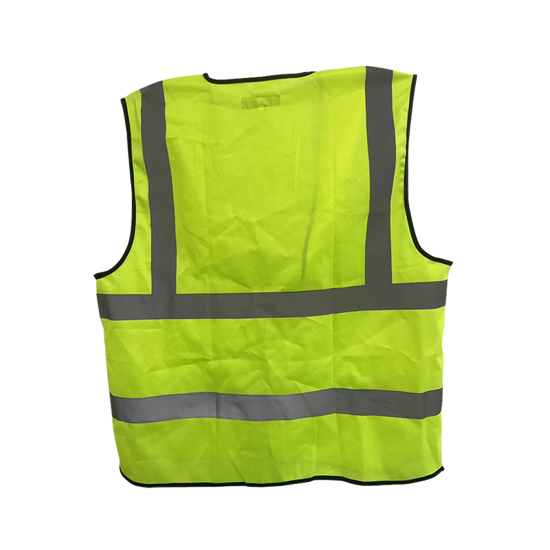 High visibility safety vest Color Neon Green,warp knitted 100% polyester fabric,reflective silver tape,2 horizontal stripes and 2 vertical stripes,ideal for construction and other industrial applications.