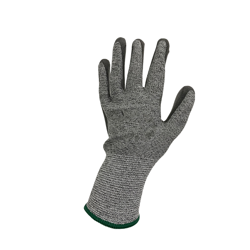 13g HPPE/glass fiber/spandex/nylon liner,grey PU dipping,cut resistance and abrasion resistance against mechanical risks, good breathability, secure grip.