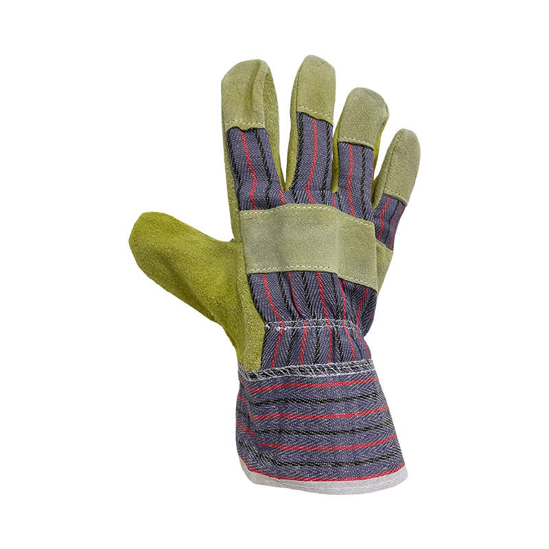 All purpose glove,light yellow cowsplit leather,striped cotton back and cuff,palm lined,good flexibility and secure grip.