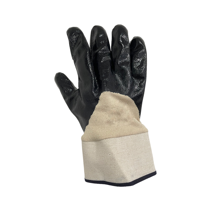 Nitrile glove,jersey supporting liner,black nitrile 3/4 coating,safety canvas cuff,wear comfort,superrior grip.