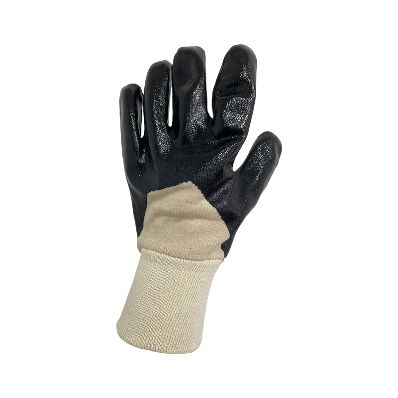 Nitrile glove,jersey supporting liner,black nitrile 3/4 coating,knit wrist,wear comfort,superrior grip.