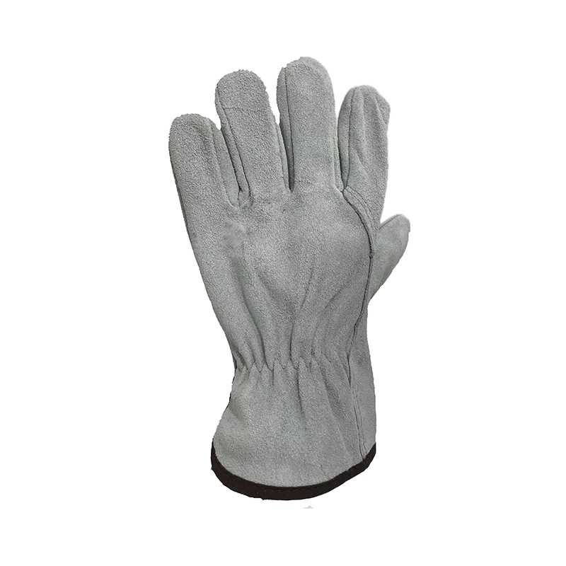 Driver's style,full cowsplit leather,natural color,shirred elastic back,wing thumb,offers wear comfort and good flexibility, EN 388 standard against mechanical risks.