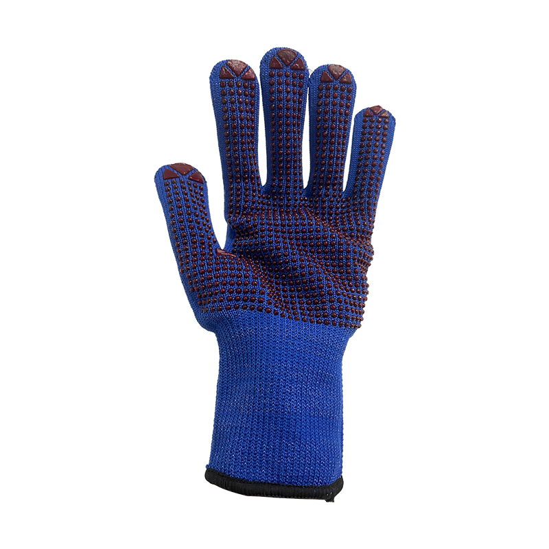 Seamless knit glove,13G, nylon/cotton double layer,red PVC dots on palm, good fit for improved grip,resistance to mechanical risks, EN 388 standardSize:8,9,10,11(S,M,L,XL)