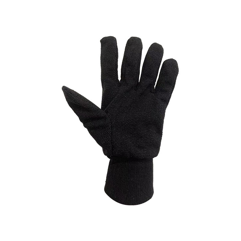 A classic all-round glove,brown jersey cotton,brown knit wrist,vinyl dots on palm,good grip.