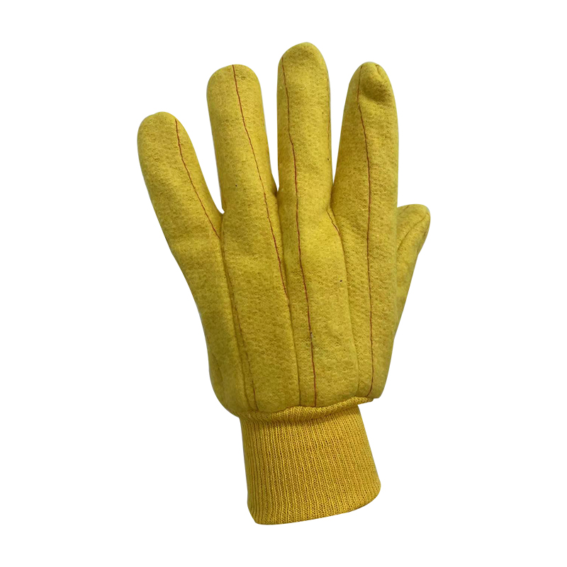 Hotmill glove,heavy cotton flannel,yellow color,heat-resistant,knit wrist.