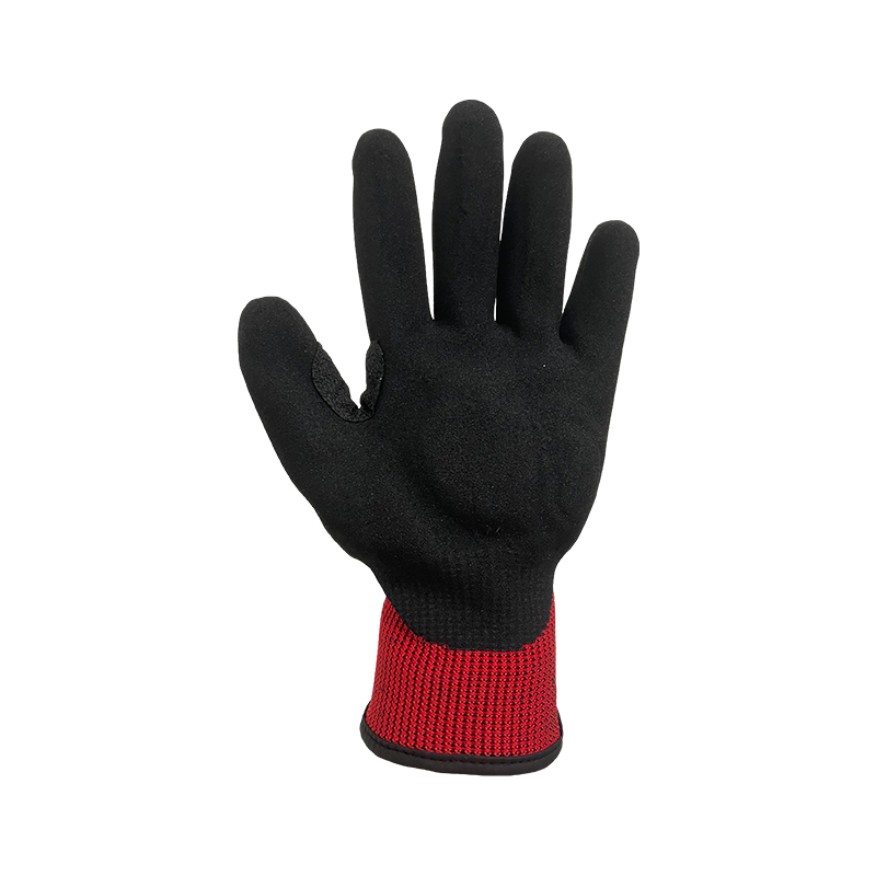 13G Nylon/spandex fiber glove,sandy nitrile palm coating,with reinforcement padding on palm,reinforced crotch between thumb and index finger,velcro fastener cuff,TPR guards on back providing impact protection,high level cut-resistance,mechanical vibration absorbing. Good fit for improved grip.
