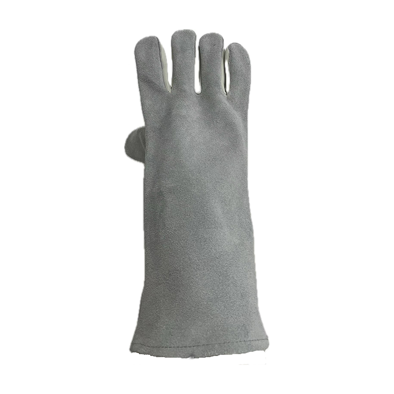 Welding glove,thick and top soft beige cowgrain leather palm,natural cowsplit leather back and cuff,wear comfort,good dexterity,providing burn resistance and heat resistance.