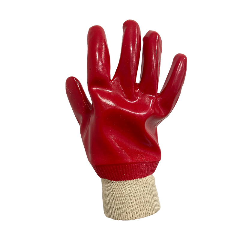 PVC dipped glove,oil-resistant vinyl,full dipped back, smooth finish,interlock cotton lining,knit wrist.