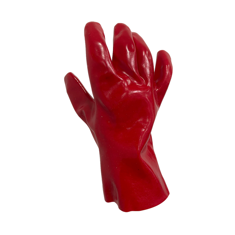 PVC dipped glove,oil-resistant vinyl,smooth finish,interlock cotton lining,gauntlet,red color.