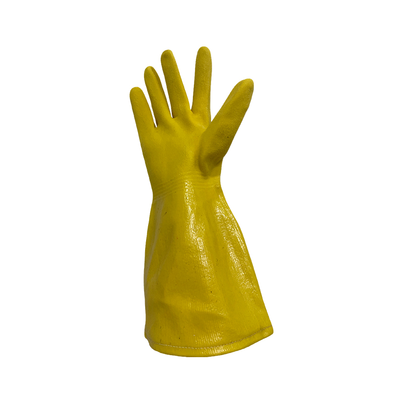 Fully nitrile dipped glove,interlock liner,yellow sandy palm and back,33cm length.